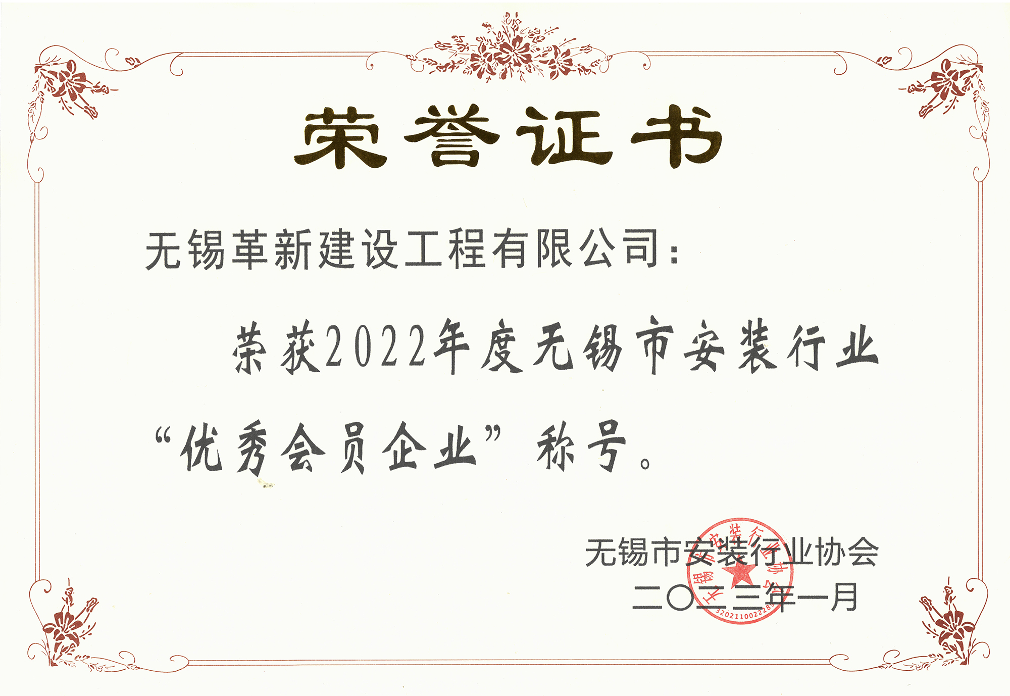 2022年度無錫市安裝行業(yè)-優(yōu)秀會員企業(yè)