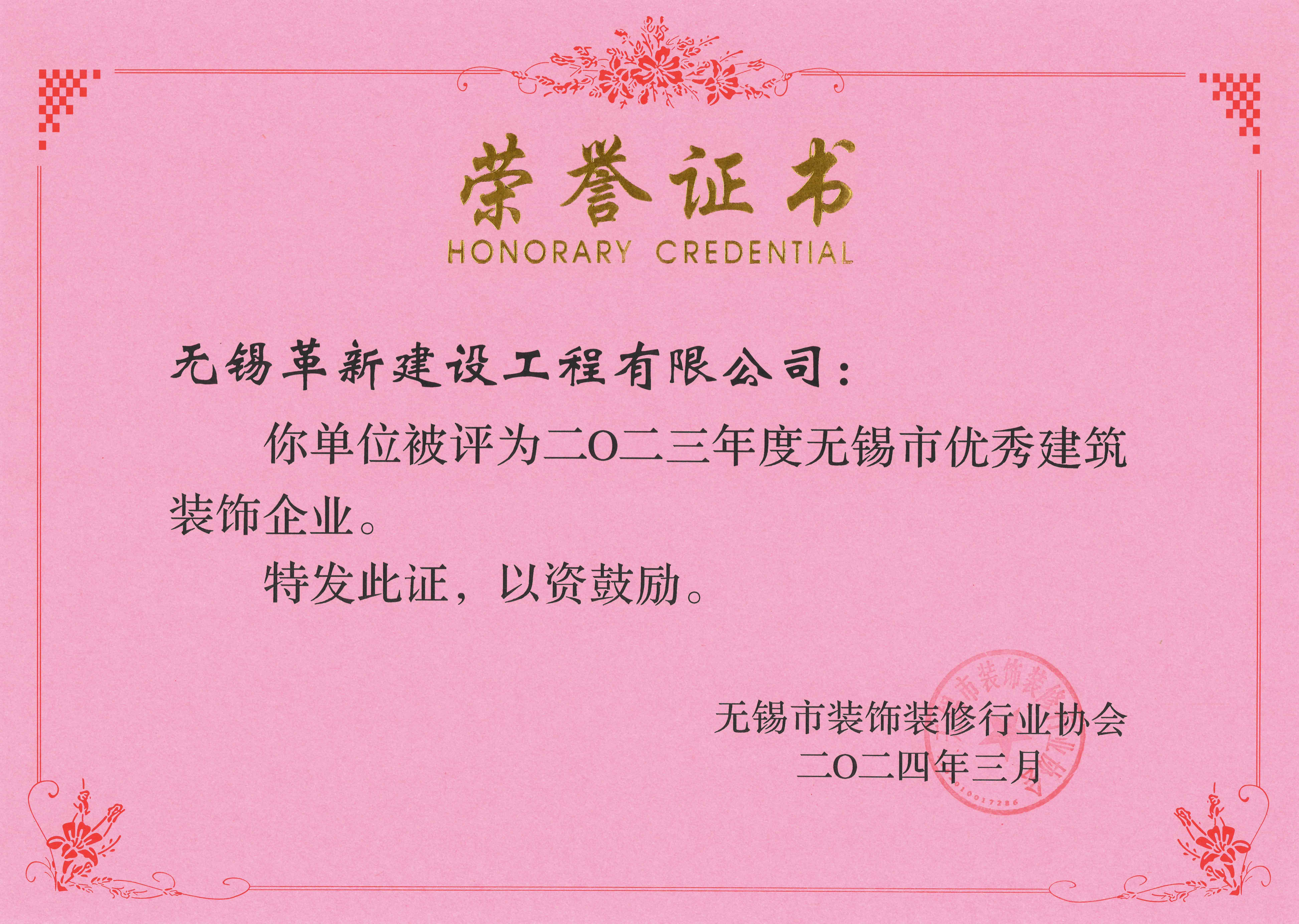 2023年度無錫市優(yōu)秀建筑裝飾企業(yè)