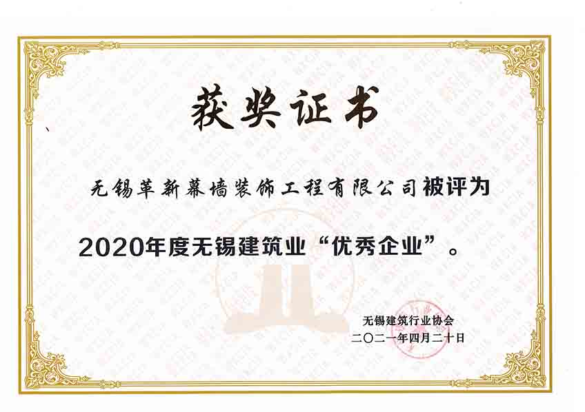 喜訊:熱烈祝賀我公司榮獲2020年度無錫建筑“優(yōu)秀企業(yè)”