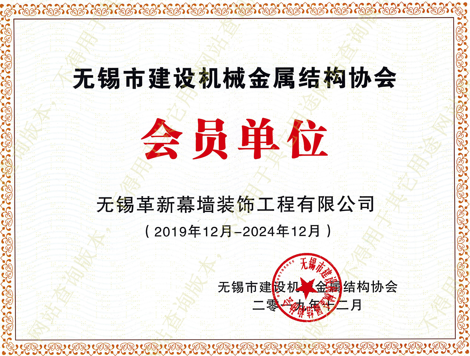 喜訊:熱烈祝賀我公司榮獲2019年度獲得無錫市建設機械金屬結構協(xié)會會員證書
