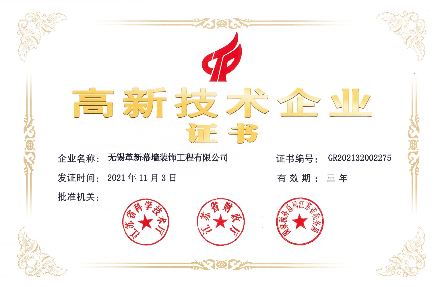 喜訊:熱烈祝賀我公司榮獲“江蘇省2021年度高新技術(shù)企業(yè)”